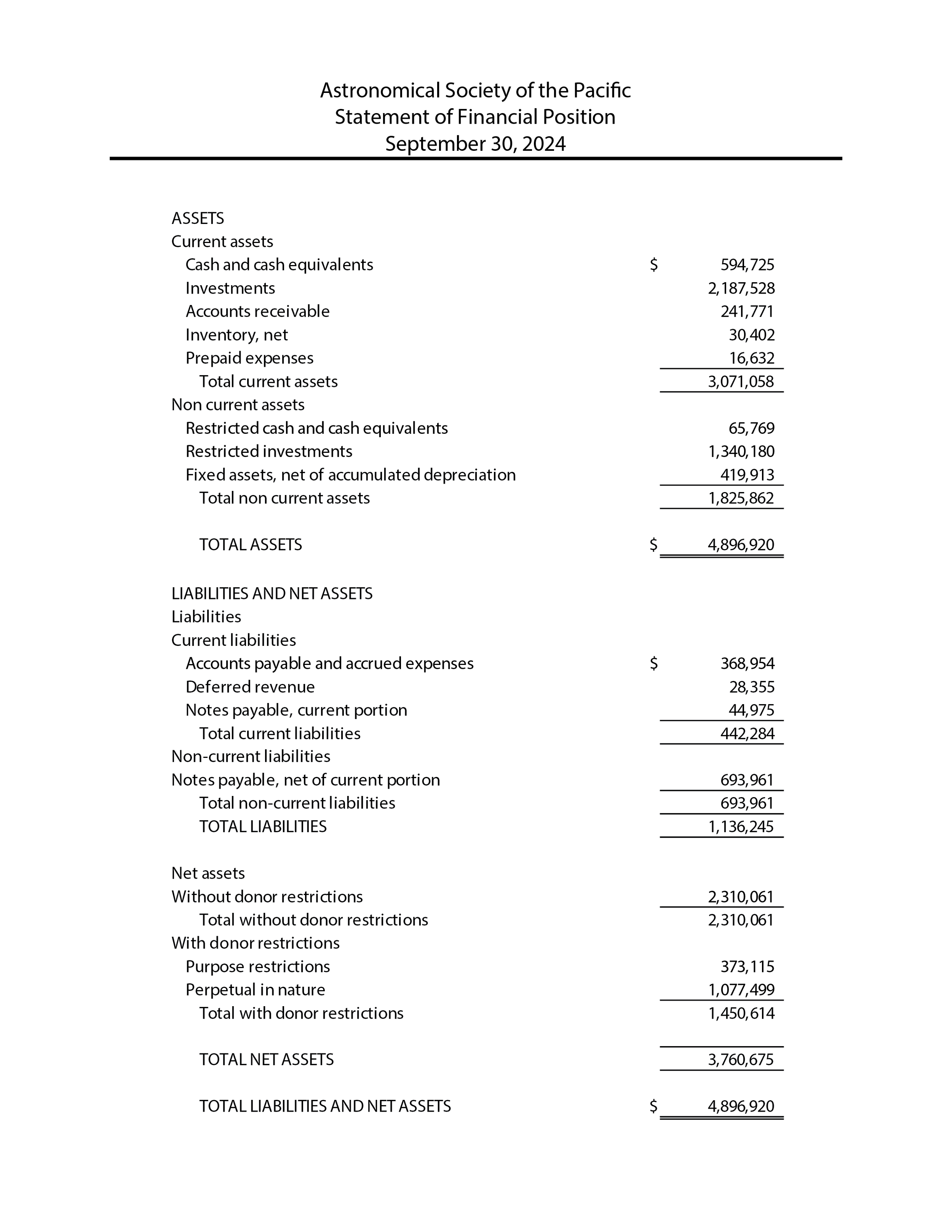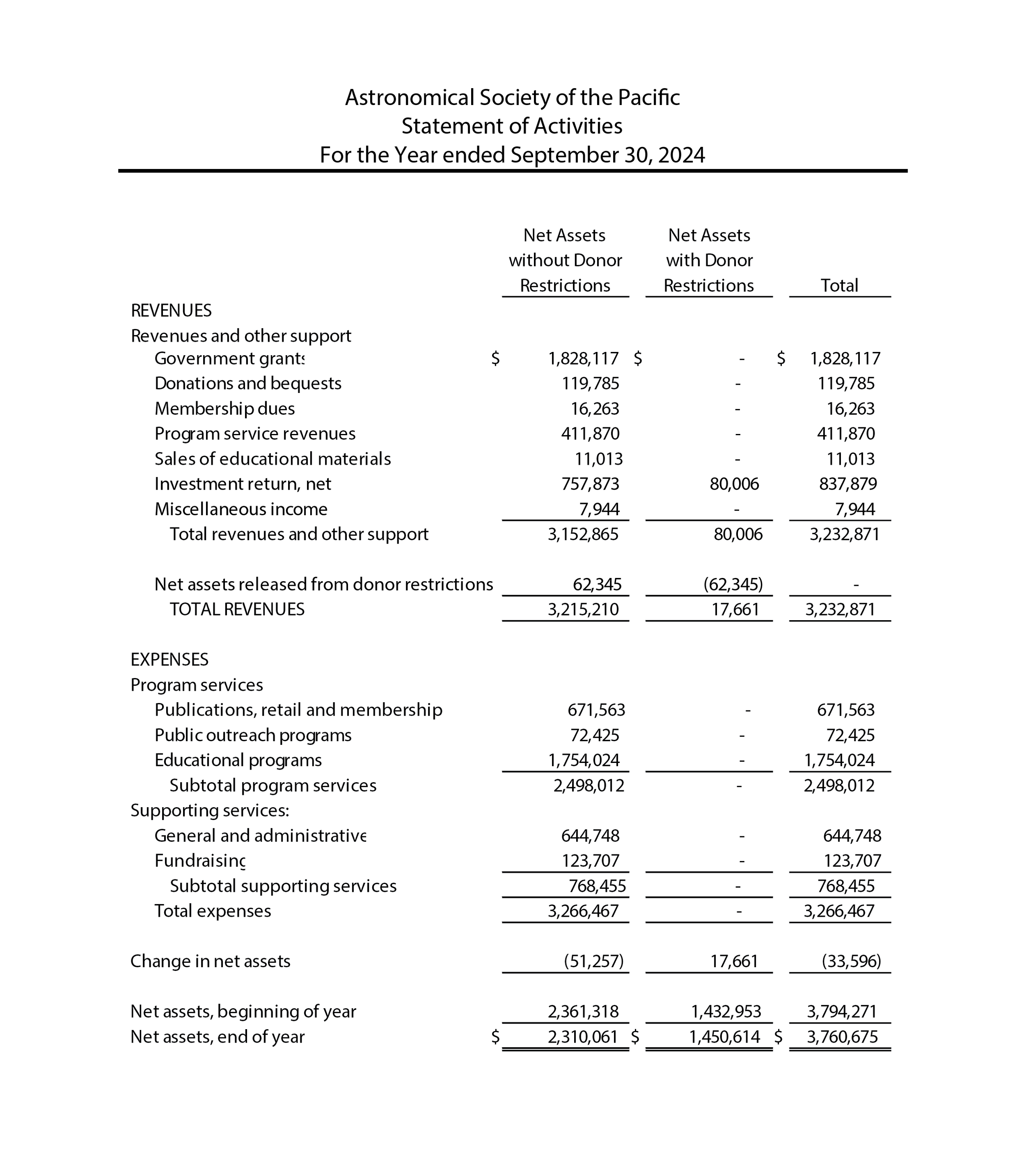 Finances The year in numbers: Statement of activities and financial position for the year ending September 30, 2024. DONATE to the ASP View Next Page